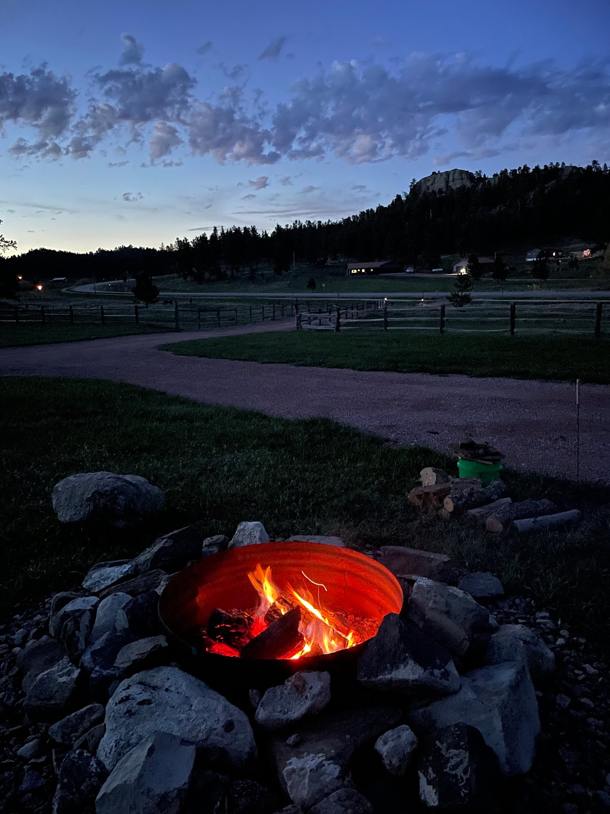 We checked into a really great rental cabin, nine miles south of Custer. We loved that the host provided wood for nightly fires in a fire ring as we watched the stars come out in the big night sky.